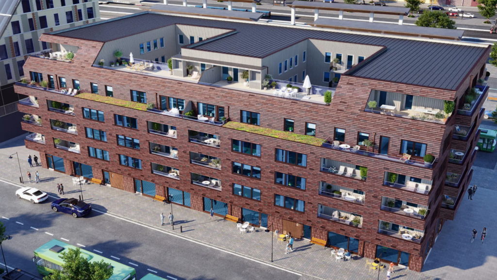 Nybyggnad av flerbostadshus som består av en byggnad med 70 lägenheter på 6 våningar varav ett är under mark. Flera