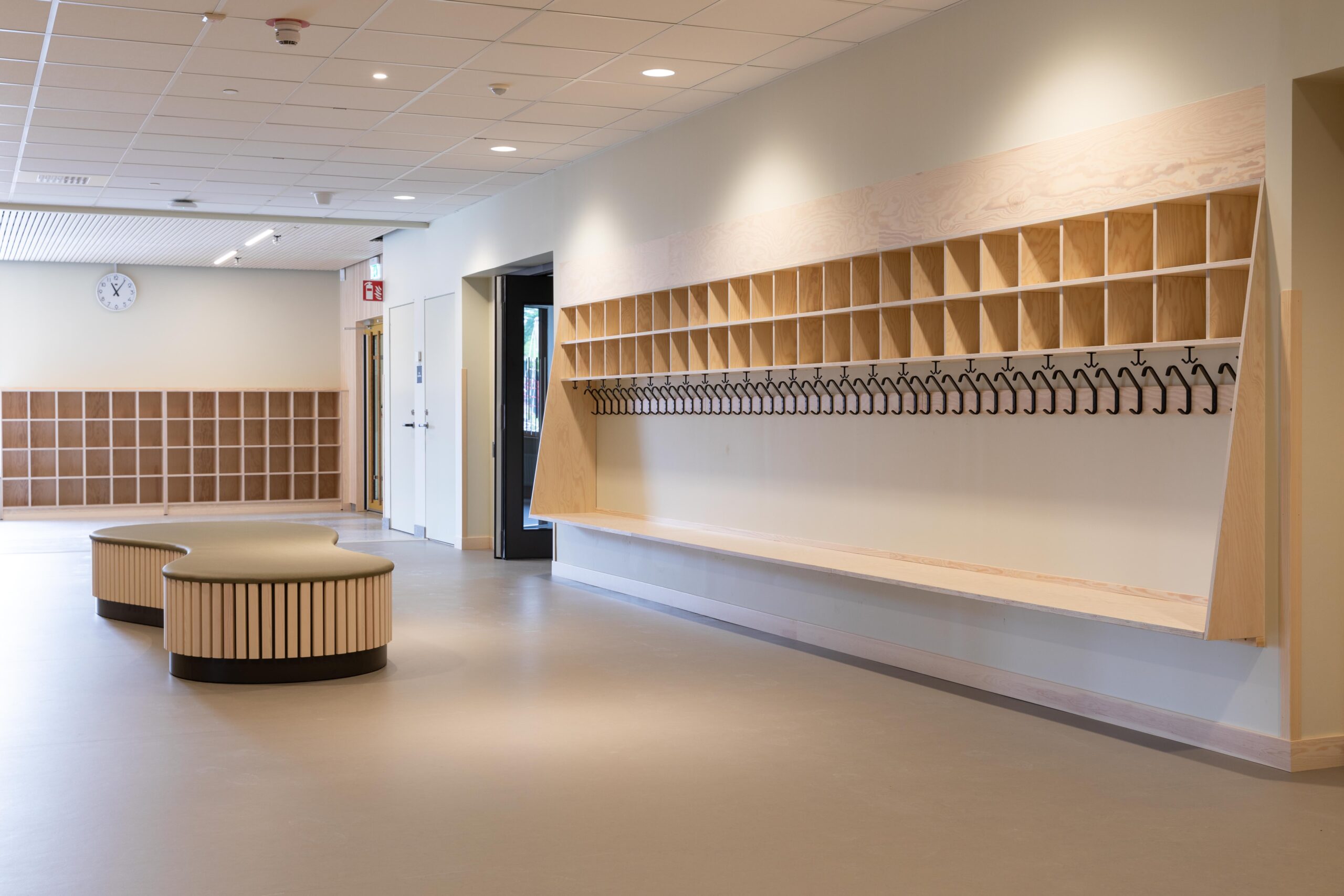 Invändigt har skolan en arkitektur som främjar trivsel och studiero.
